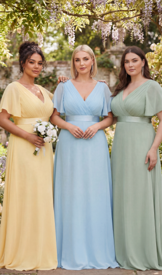 If you’re shopping for a plus size wedding guest dress or evening gown, choose styles that define your waist and allow gentle draping over the midsection.