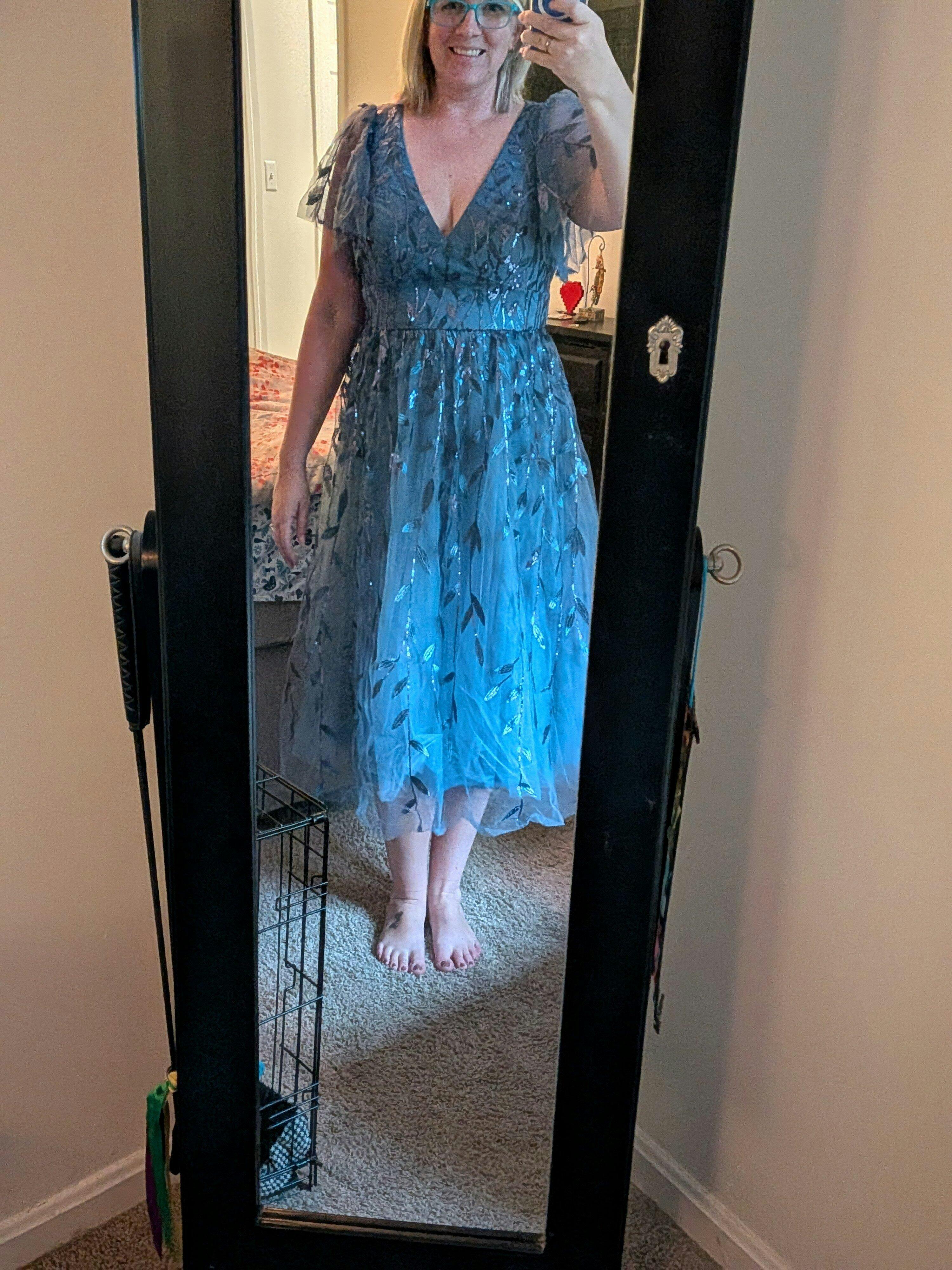 I ordered this dress for my daughter’s wedding. I am a plus size and it’s hard to find pretty dresses in my size. I was hesitant with buying on-line because I was afraid the dress would not fit or would be poor quality. I received my dress in just a few days of ordering. It fits perfectly and is really good quality. I am very pleased. I love it! My daughter loves it too (she is sooo picky). Your shop is aptly named because I actually feel “pretty” wearing it. Thank you so much!
