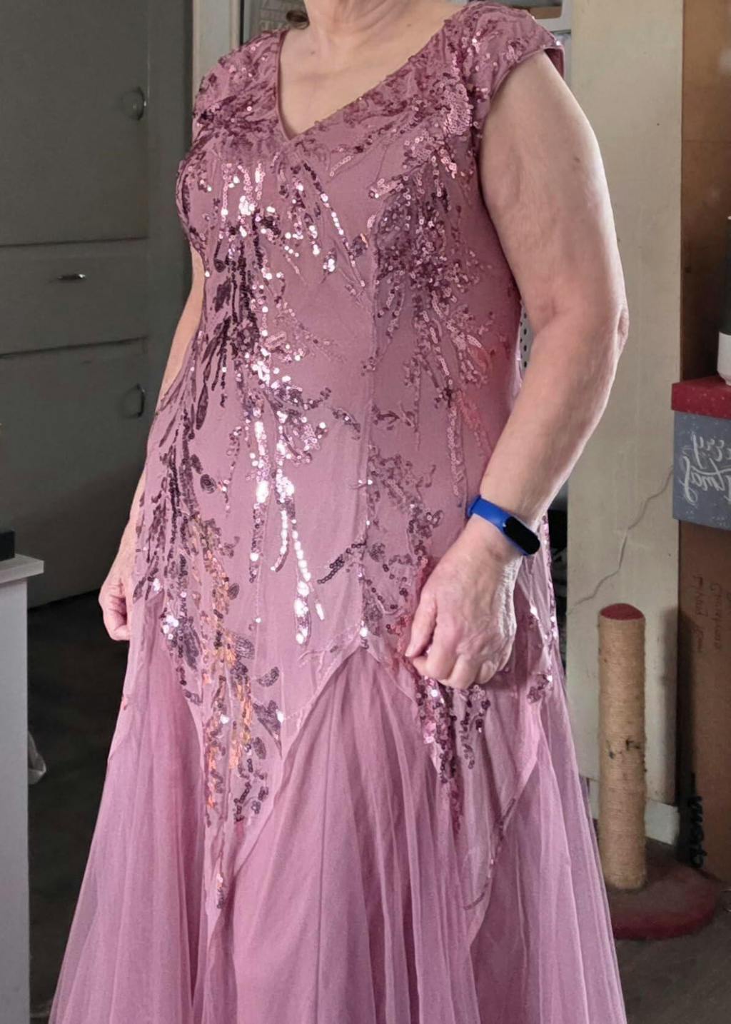 I wore this dress for a formal night on our cruise and it was absolutely spot on. The sequins look elegant under evening lights, not flashy, and the length felt very appropriate for a formal setting. It was comfortable enough to wear for dinner and a show afterward. I received several compliments that night.