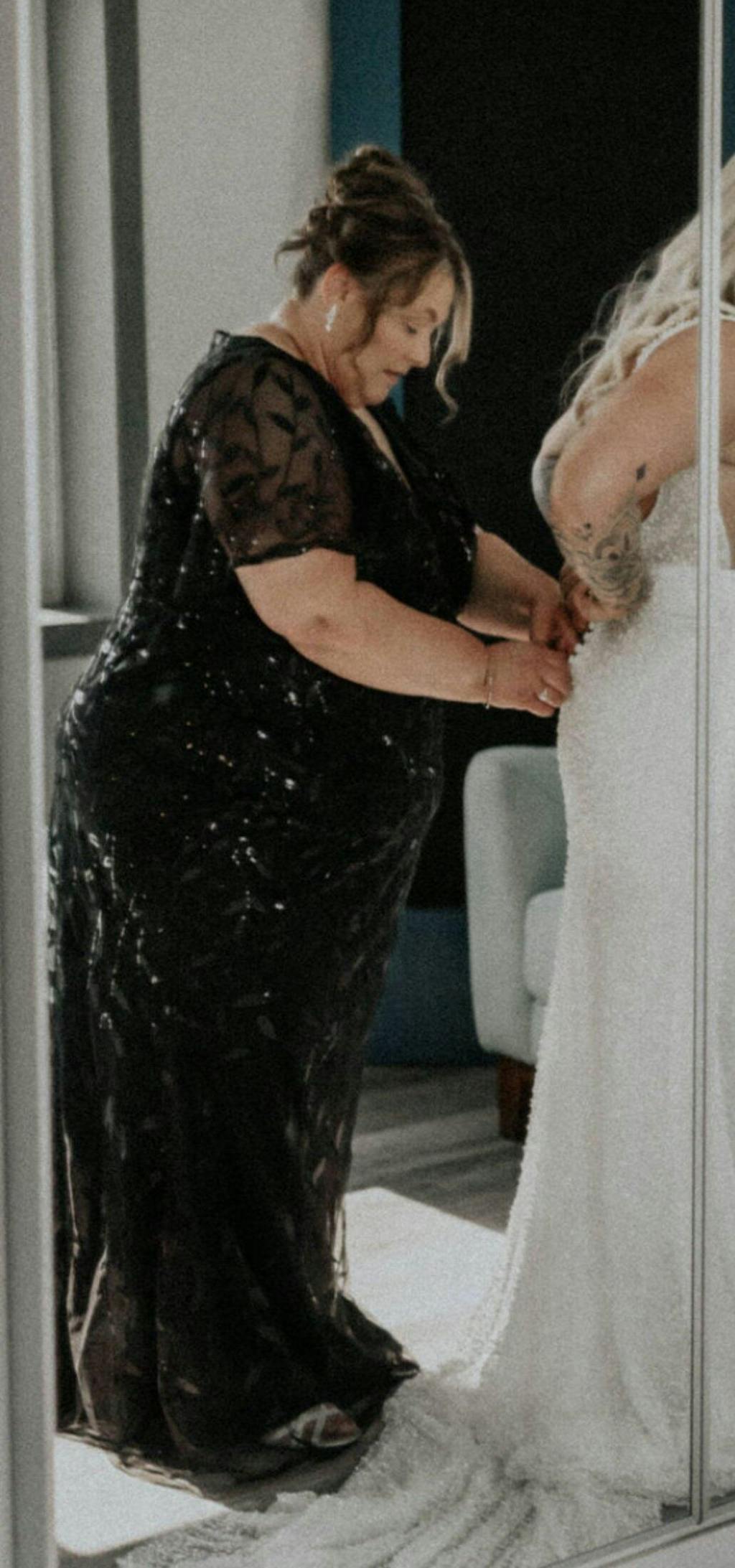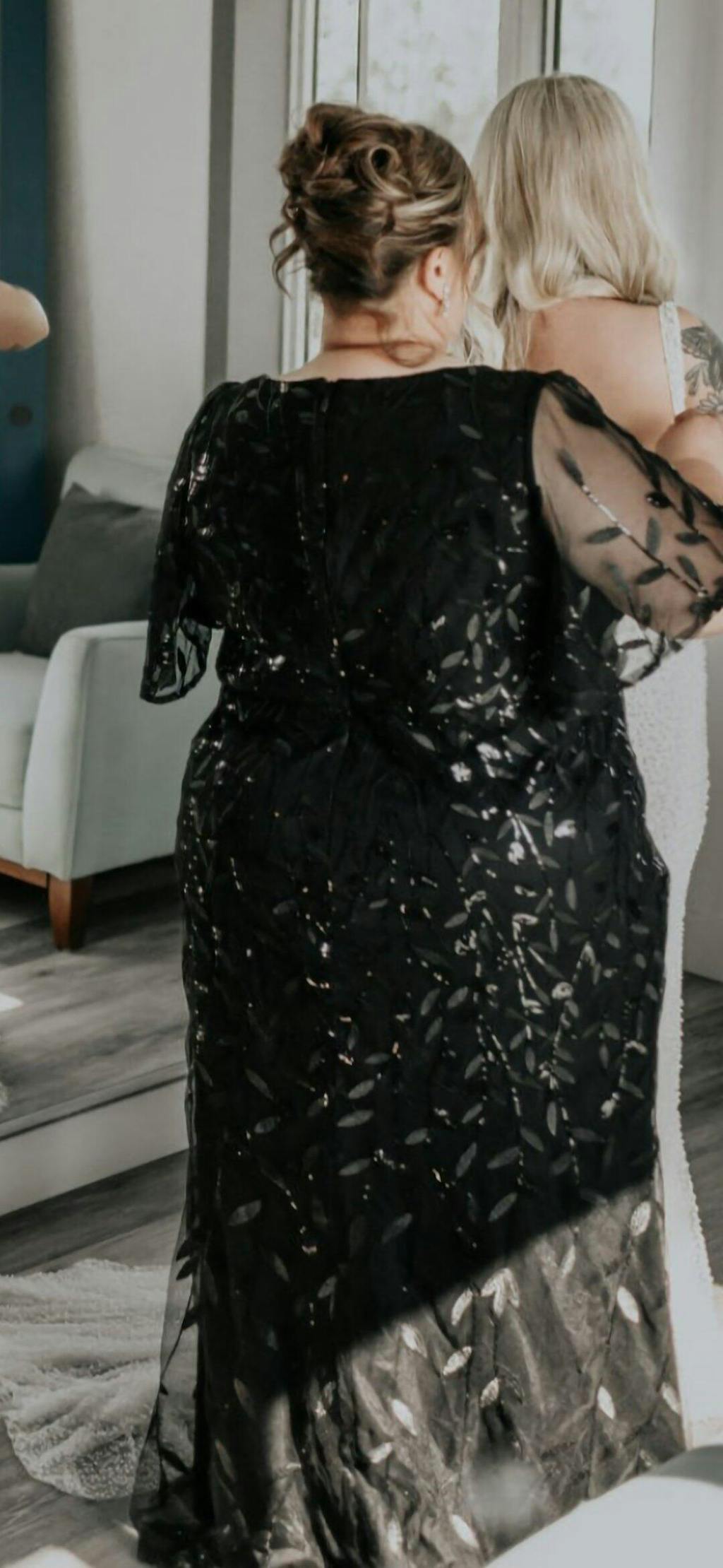 Loved this dress, I felt comfortable in it it had a beautiful flow when walking. My daughter said wear black and you have to shine as well Mom. I am 5'3" and chunky lady I wear a 3xl and bought this dress in a size 26 so I could alter to what I needed. Better larger than to small. I only need to alter the shoulders a bit so it wasn't showing to much cleavage. Ever Pretty has beautiful dresses and the price! Come on i couldn't believe my dress only cost $100!