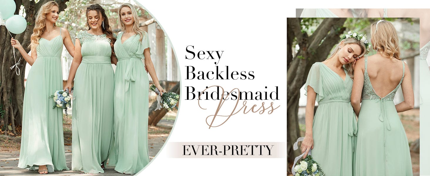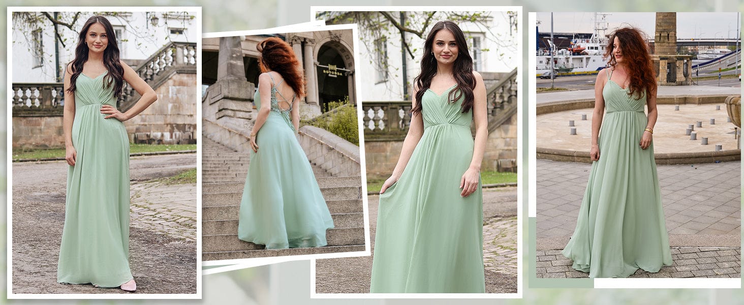 Chiffon and Lace Open Back Spaghetti Straps Bridesmaid Dress #color_Eucalyptus