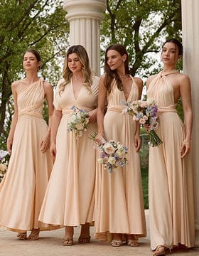 Chiffon V-Neck Long Sleeves Elastic Band Midi Wedding Guest Dress