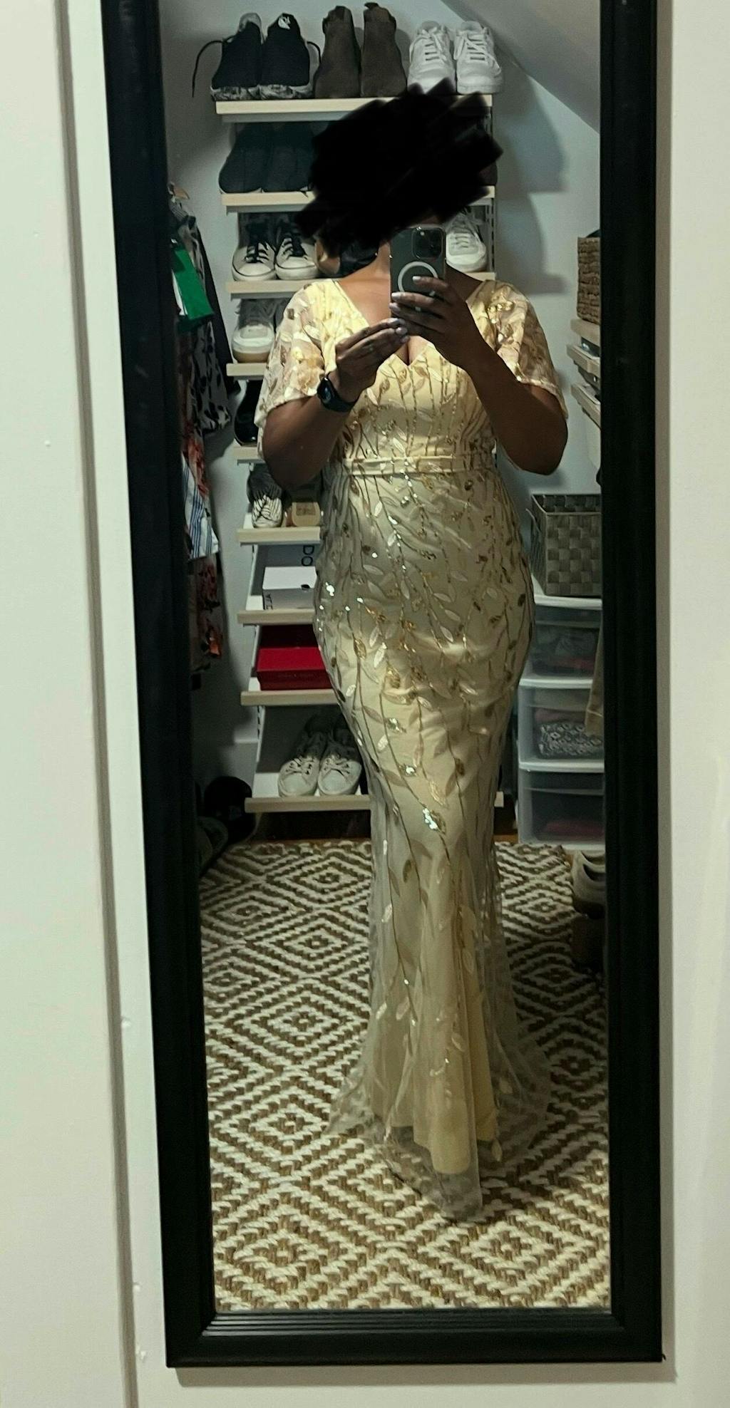 Gorgeous V Neck Leaf-Sequined Fishtail Party Dress