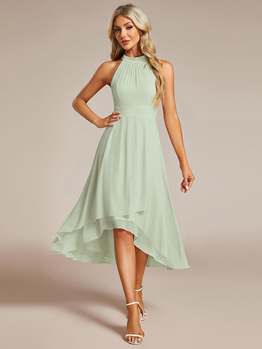 Midi Halter Neck Chiffon Wedding Guest Dress with Sleeveless and A-Line