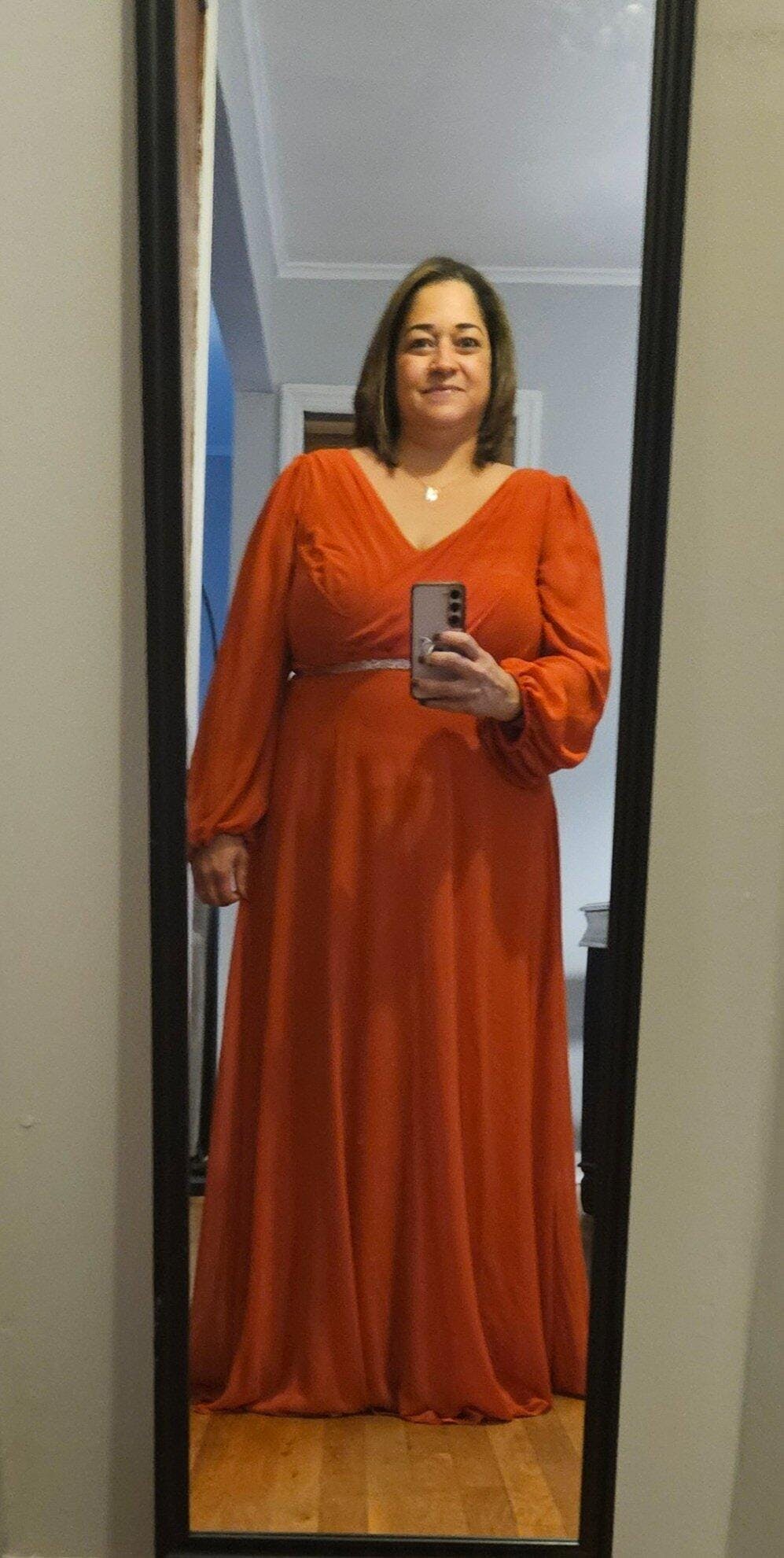 Embrace your curves and exude confidence in this stunning Plus Size A-Line V-Neck See-Through Long Sleeves Shiny Belt Chiffon Evening Dress. Whether it's a gala, wedding, or cocktail party, this dress is sure to make you the center of attention with its flattering silhouette and alluring see-through sleeves.