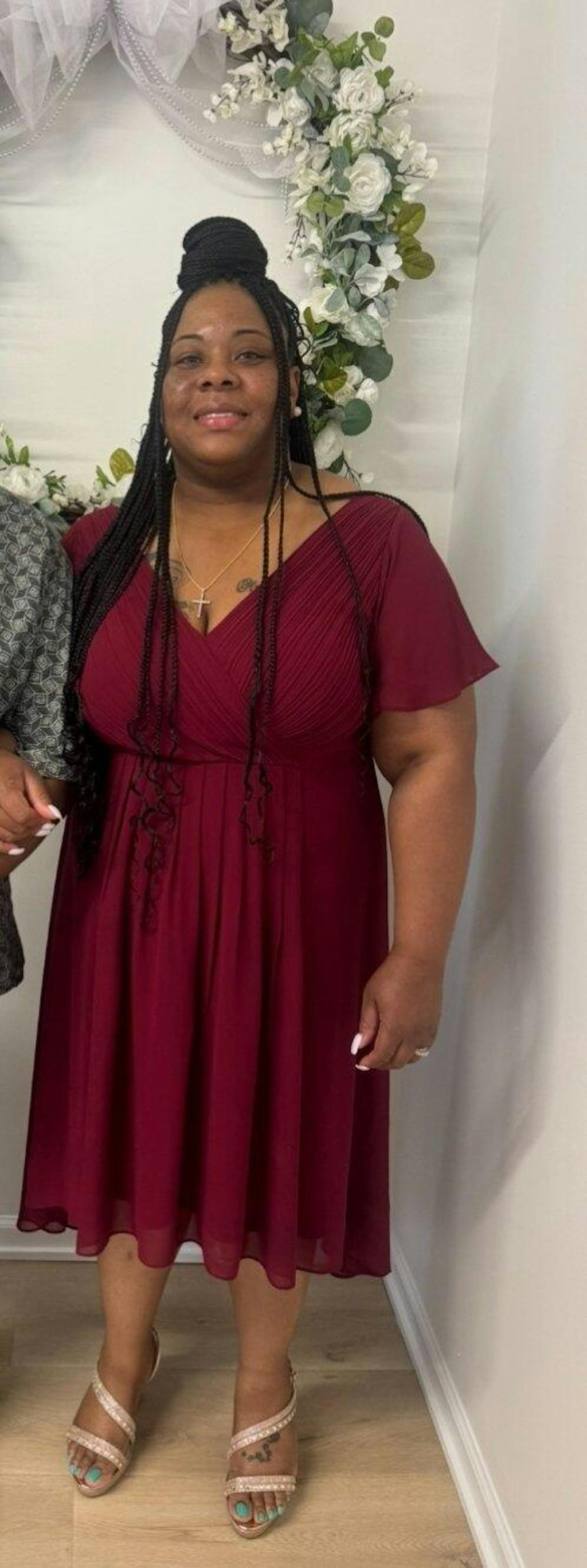 Look effortlessly chic and sophisticated in our Plus Size Double V-Neck Ruffles Sleeve Chiffon Midi Wedding Guest Dress. Crafted from flowy chiffon fabric, this dress exudes grace and elegance. The midi length adds a touch of class, making it an ideal choice for any wedding or semi-formal wedding guest occasions.
