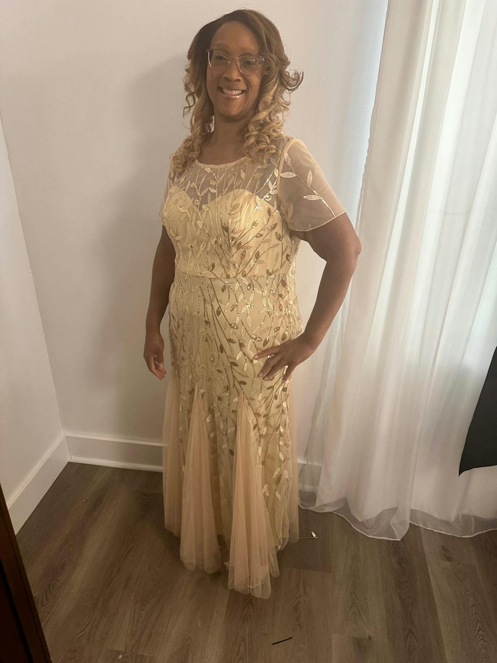 This plus size sequined tulle evening dress oozes romance with its shimmery leave design and a sheer round neckline. This plus size tulle dress is a perfect choice for people who are looking for an elegant look, but its delicate details add just enough flair to show your taste. It's perfect for evening party, cocktail, prom, homecoming, graduation, weddings, and any other formal affair!