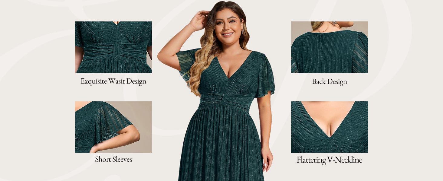 Unleash your inner elegance with this stunning A-line dress featuring a shimmering glittery fabric. The flattering V-neckline and delicate flutter sleeves create a romantic silhouette, making it ideal for formal occasions. With its comfortable fit and graceful pleats, this dress ensures you shine bright while keeping you effortlessly chic and confident all night long.