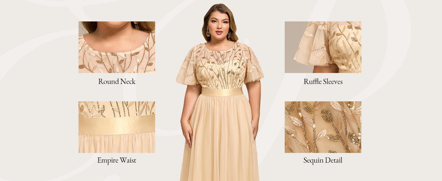 Elevate your evening attire with this stunning midi dress featuring intricate sequin leaf embroidery. The delicate sheer sleeves and cinched waist offer a flattering silhouette, perfect for any special occasion. Crafted with lightweight fabric for comfortable wear, this dress effortlessly blends elegance and style, making it a must-have for your wardrobe.
