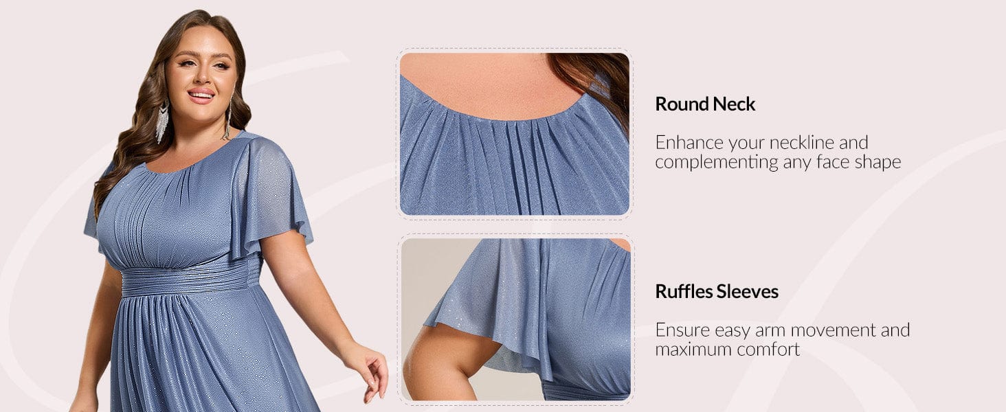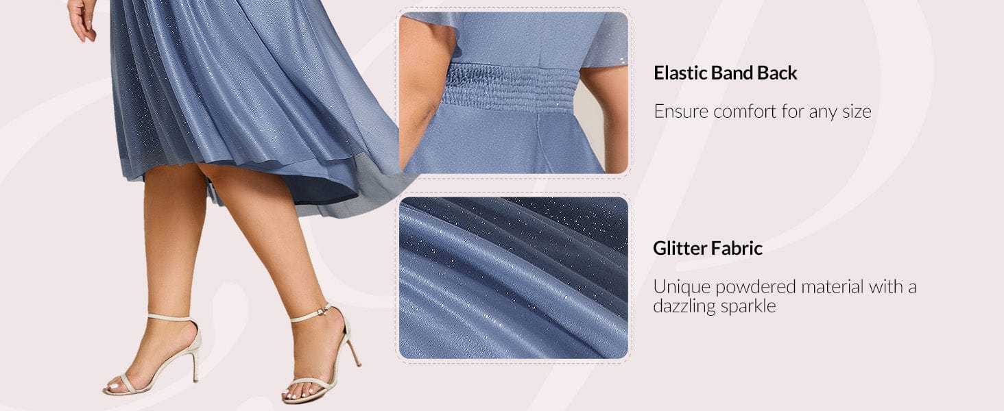 Plus Size Sequin Round Neck Asymmetrical Midi Wedding Guest Dress