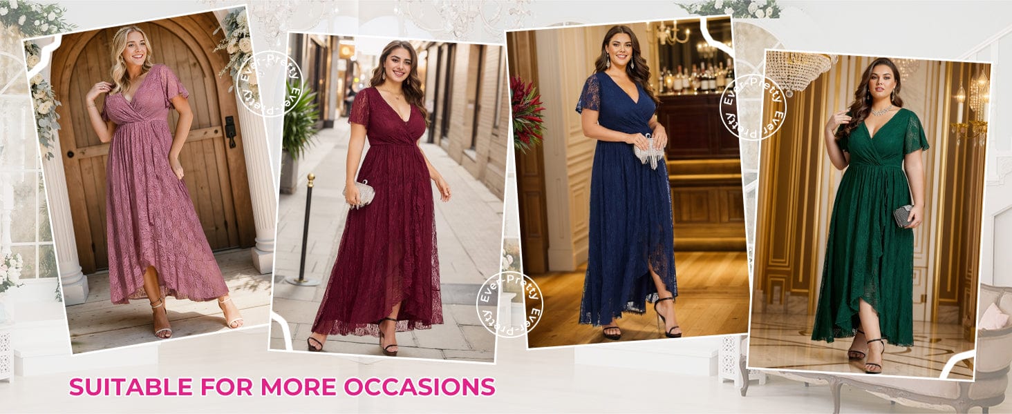 I absolutely love this dress! The lace detail is even prettier in person and feels soft, not scratchy at all. The deep purple color is gorgeous and makes me feel so elegant. The fit is perfect — it hugs just right at the waist and flows beautifully when I walk.