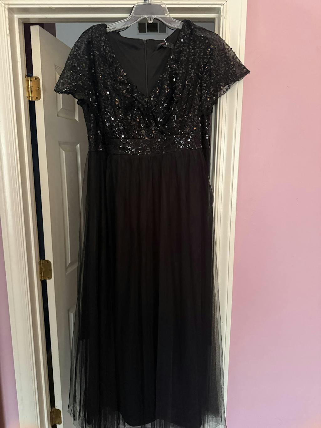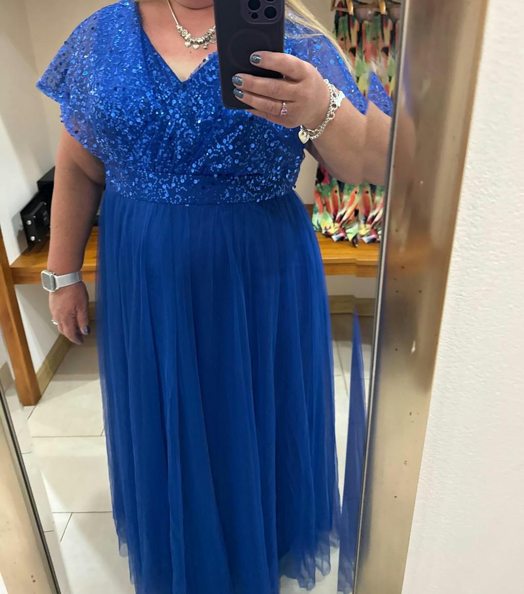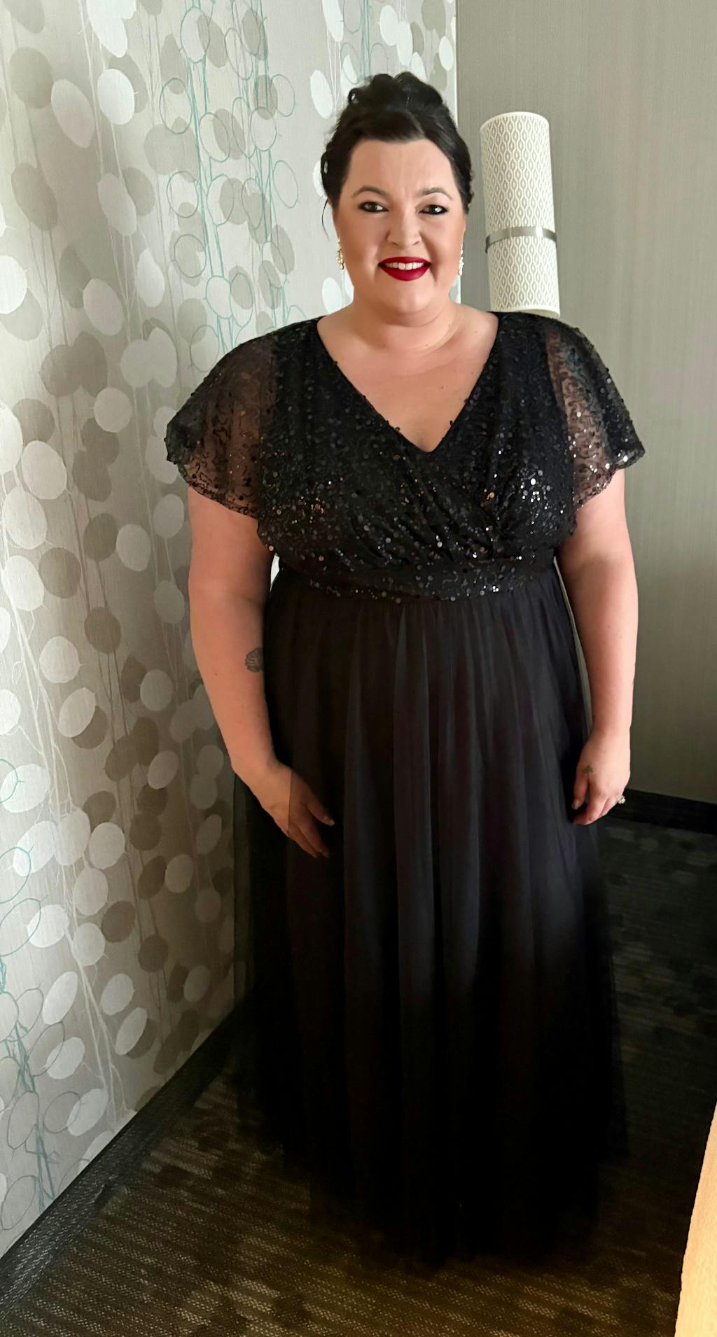 Plus Size Short Sleeves Sequin V-Neck Formal Evening Dress with Tulle