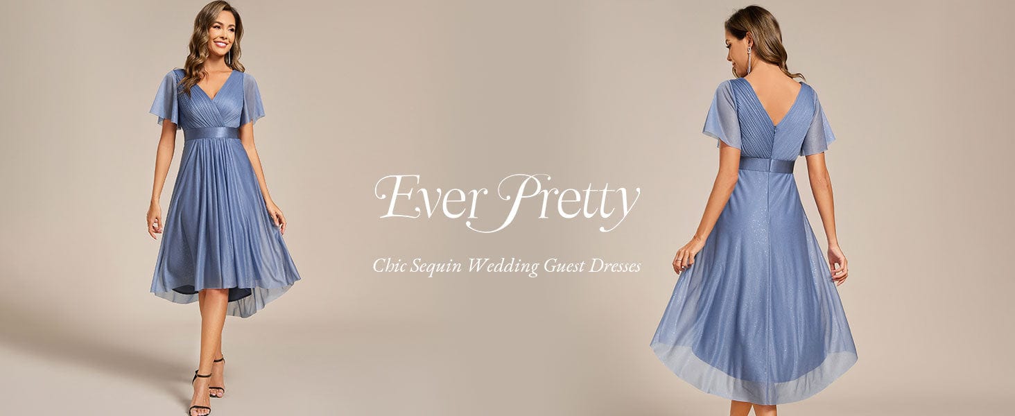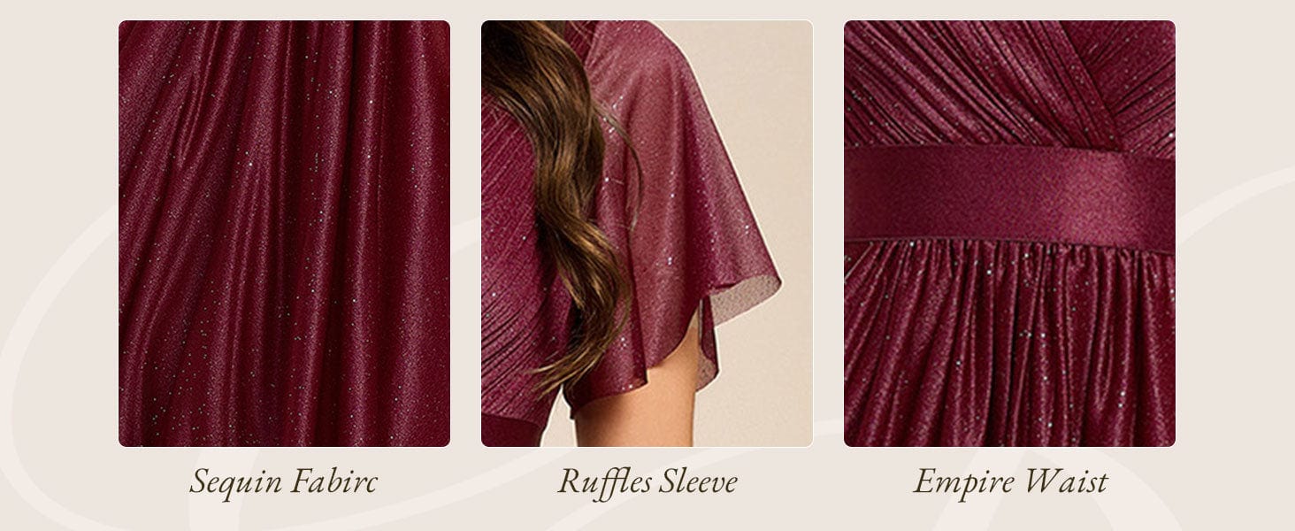 Short Sleeve V-Neck Pleated Glitter Midi Wedding Guest Dress